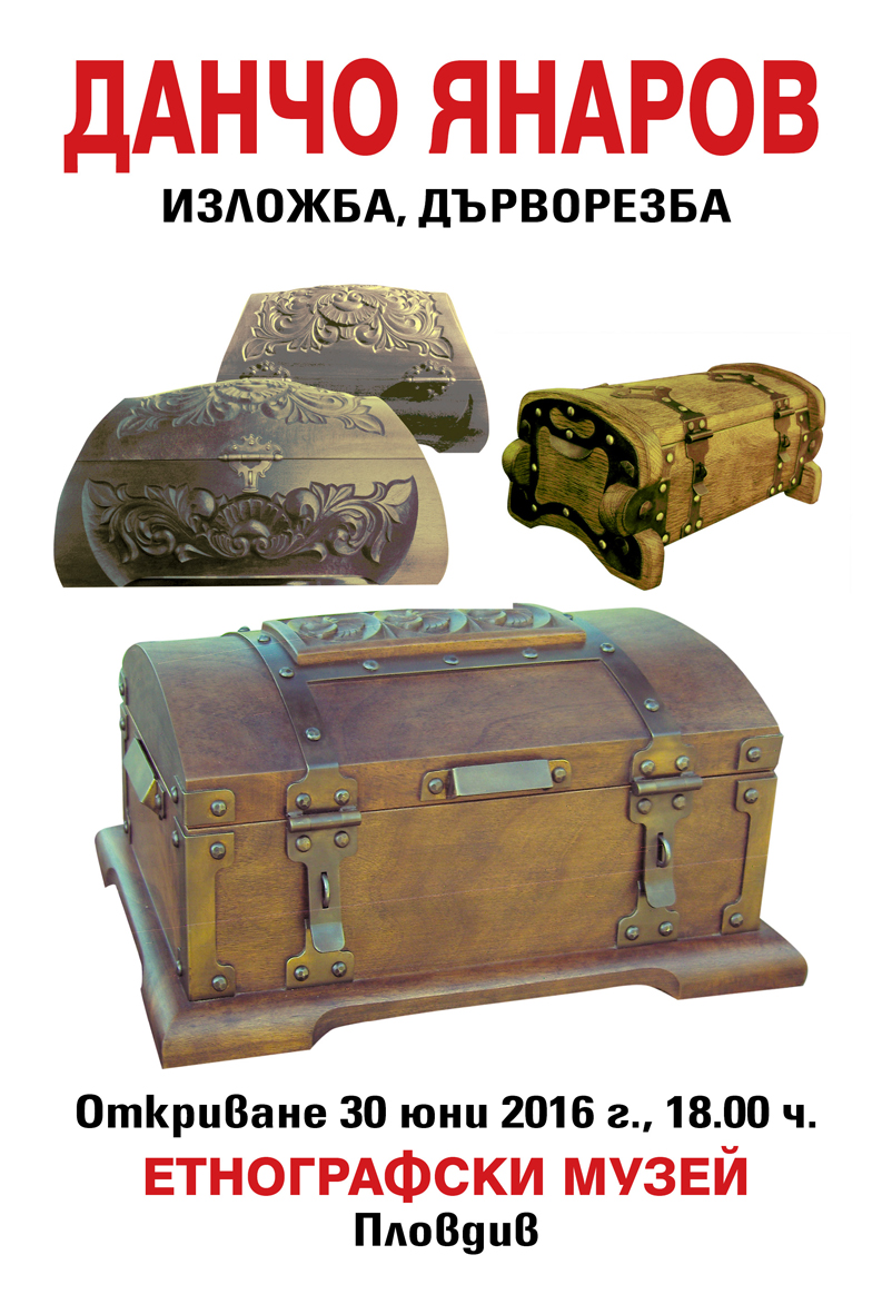 Изложбата „Дърворезба“ в РЕМ – Пловдив е по случай 65-годишнината на автора. Тя ще бъде открита от доц. д-р Красимира Кръстанова, декан на ФИФ на ПУ „Паисий Хилендарски“ и от Виктор Бойчев, директор на Държавен куклен театър – Пловдив. Официалното откриване ще се състои на 30 юни 2016 г. от 18:00 ч в Регионален етнографски музей – Пловдив. Изложбата ще продължи до края на месец юли 2016 г.